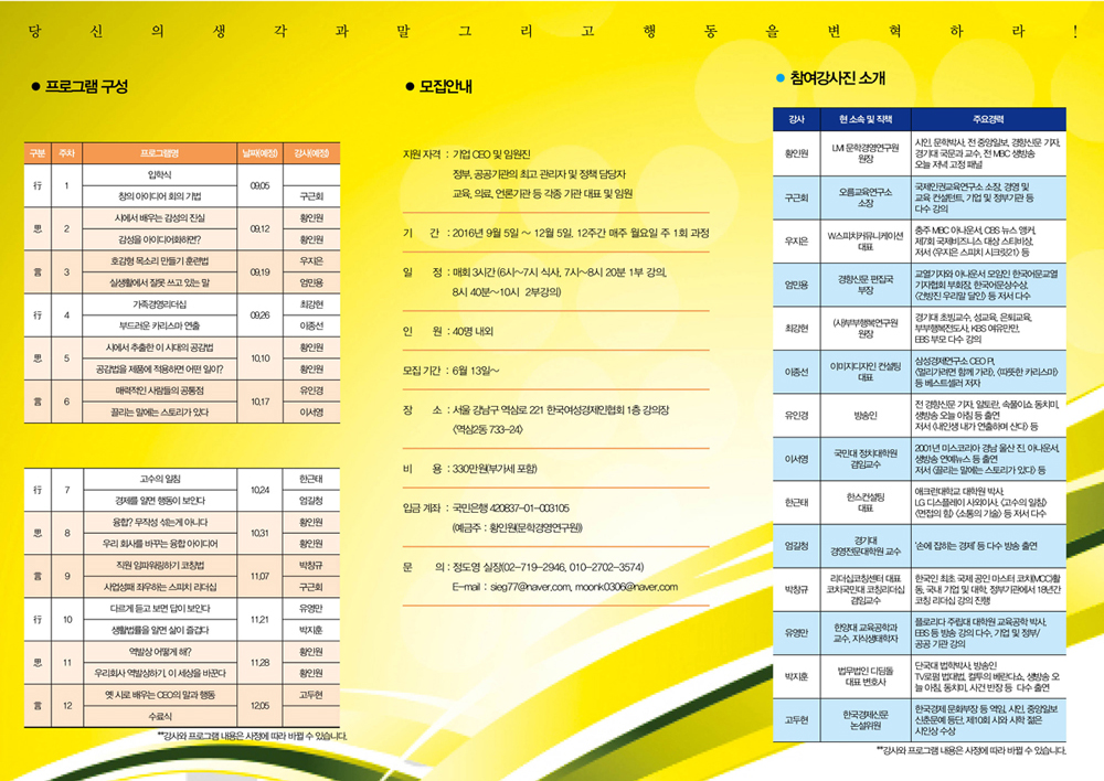 생각(思)과 말(言)과 행동(行)을 바꾸는 思言行 변혁 프로그램 <감성창조 혁신 최고위 과정>