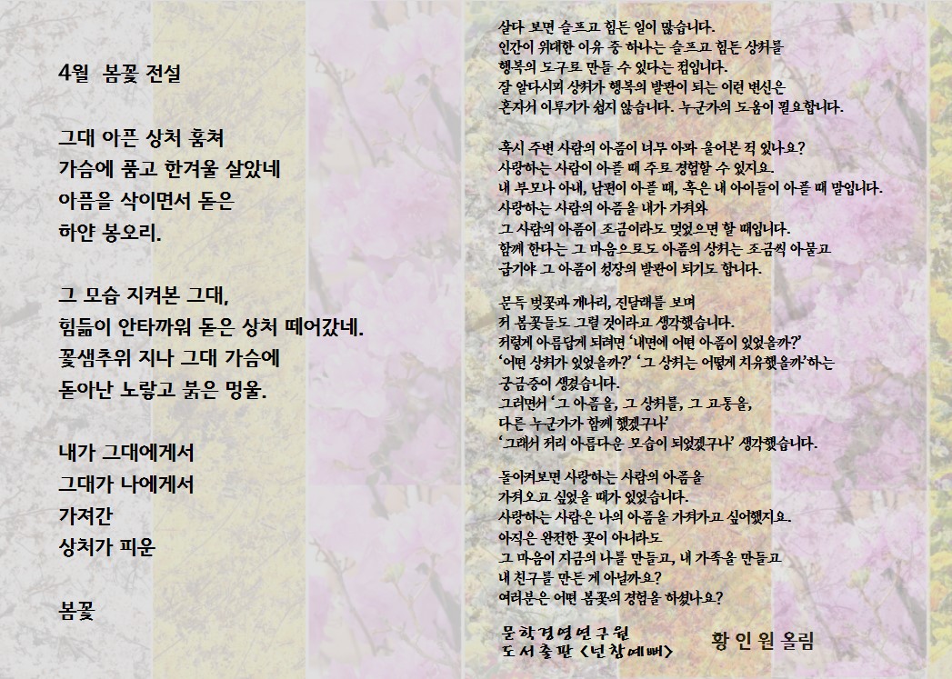 2025년 4월 시마음 페이지 정보 작성자 문학경영연구원 댓글 댓글 0건 조회Hit 1,823회 작성일Date 25-04-21 17:02 본문 4월 시마음 목록 이전글2025년 5월 시마음 25.05.28 다음글2025년 3월 시마음 25.03.20 댓글 0 댓글목록 등록된 댓글이 없습니다.