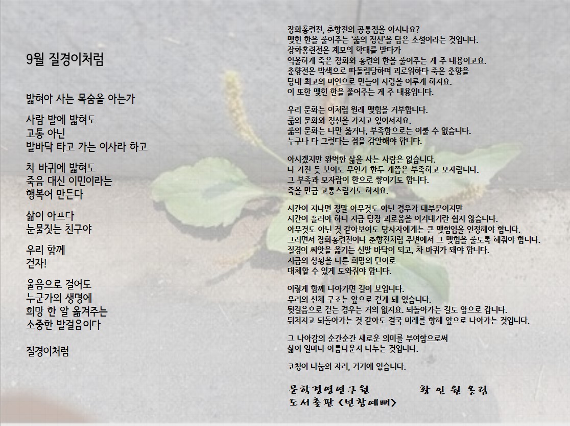 2025년 9월 시마음 페이지 정보 작성자 문학경영연구원 댓글 댓글 0건 조회Hit 948회 작성일Date 25-09-20 17:52 본문 2025년 9월 시마음 목록 이전글2025년 10월 시마음 25.10.30 다음글2025년 8월 시마음 25.09.11 댓글 0 댓글목록 등록된 댓글이 없습니다.