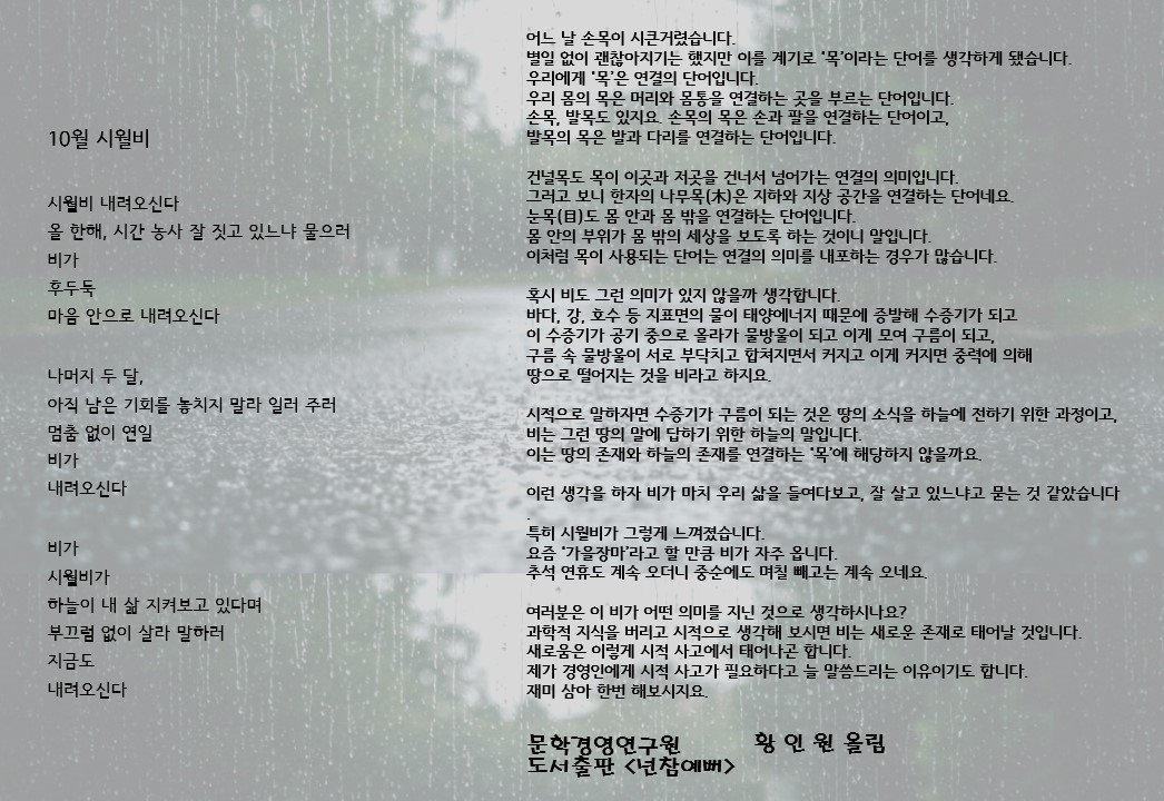 2025년 10월 시마음 페이지 정보 작성자 문학경영연구원 댓글 댓글 0건 조회Hit 575회 작성일Date 25-10-30 16:43 본문 2025년 10월 시마음 목록 이전글2025년 11월 시마음 25.11.26 다음글2025년 9월 시마음 25.09.20 댓글 0 댓글목록 등록된 댓글이 없습니다.