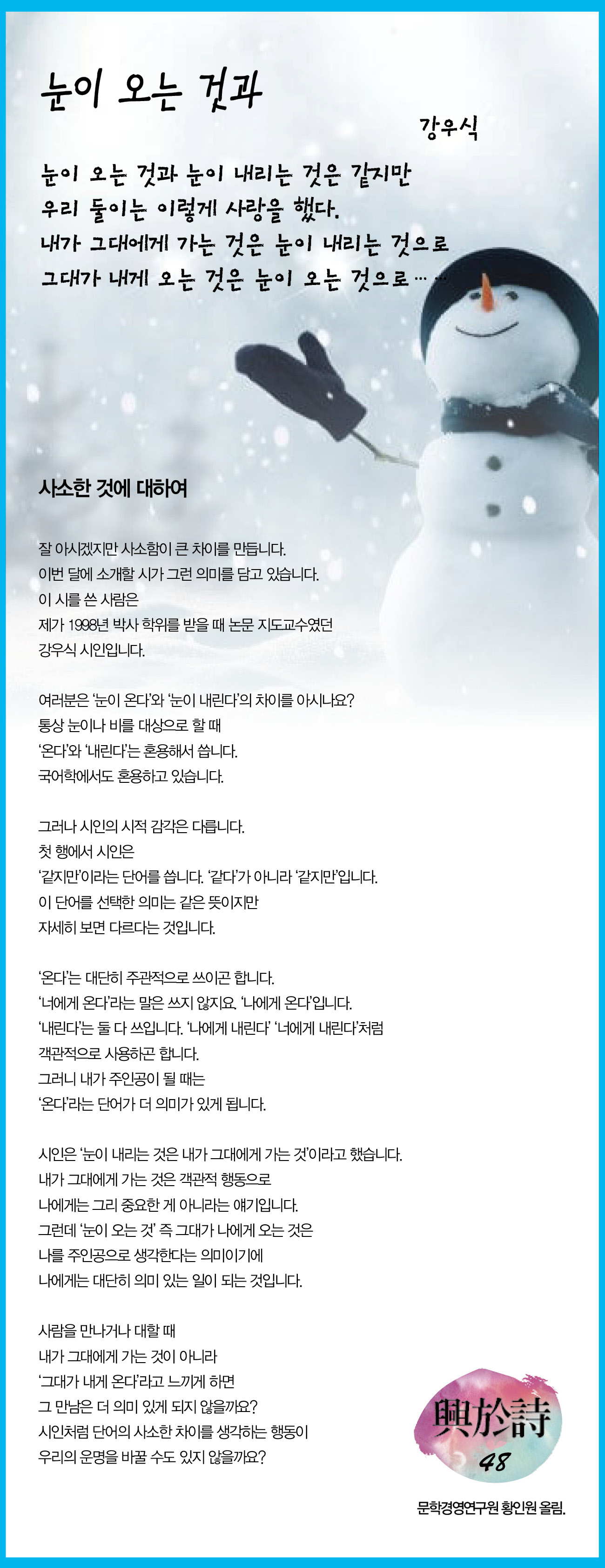 강우식 시인의 <눈이 오는 것과>라는 시를 읽으면서