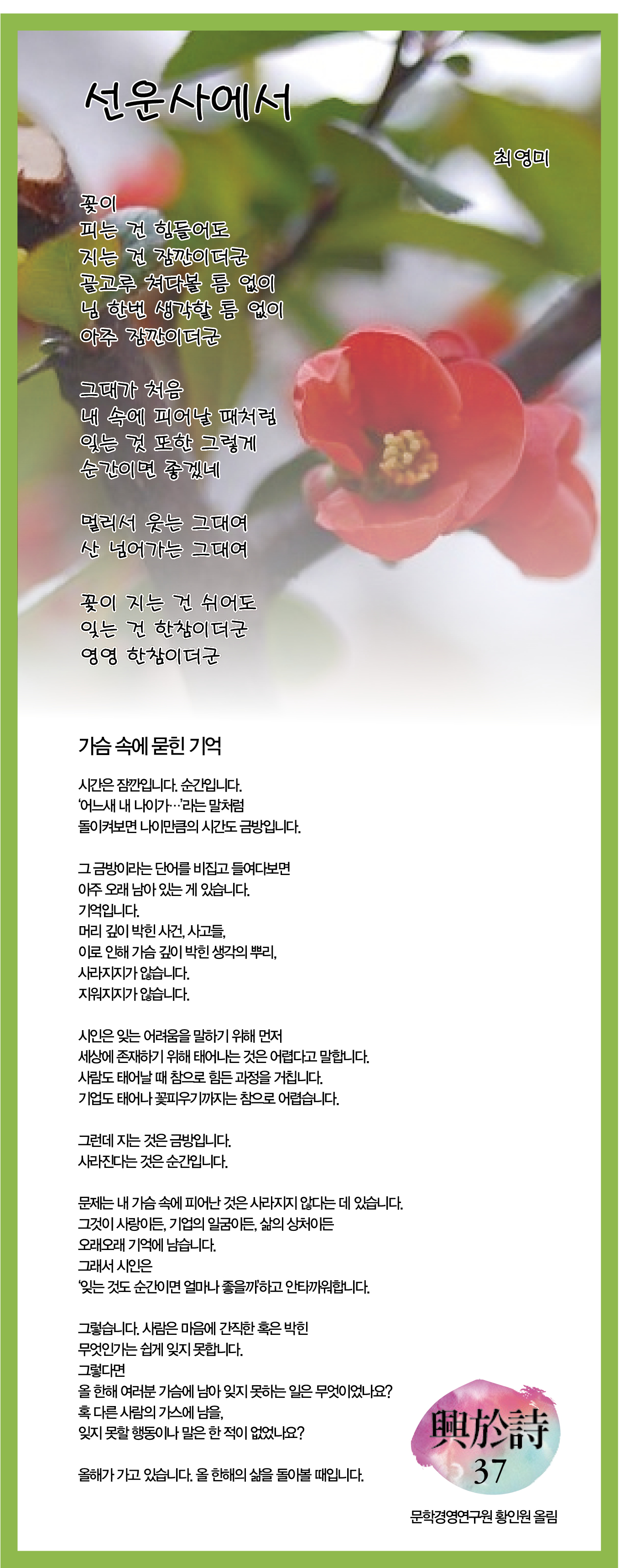 문학경영연구원에서 37번째 흥어시(興於詩)를 보냅니다.