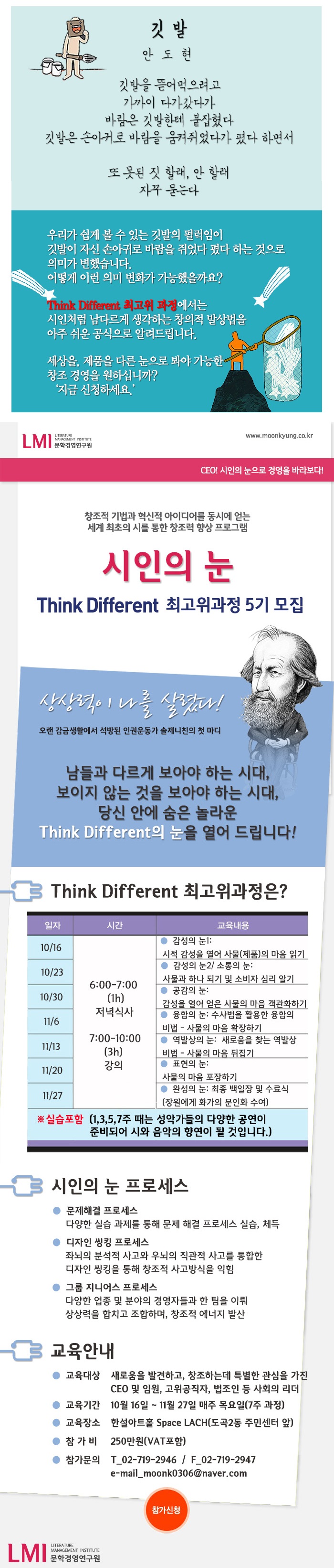 깃발_Think Different 최고위과정 제5기 모집 페이지 정보 작성자 문학경영연구원 댓글 댓글 0건 조회Hit 7,465회 작성일Date 14-10-09 12:34 본문 Think Different 최고위과정 제5기 안내 목록 이전글풀_Think Different 최고위과정 5기 모집 14.10.10 다음글시인들은 새로움을 어떻게 발견할까?_최고위과정 14.09.03 댓글 0 댓글목록 등록된 댓글이 없습니다.