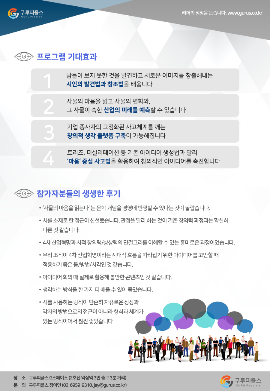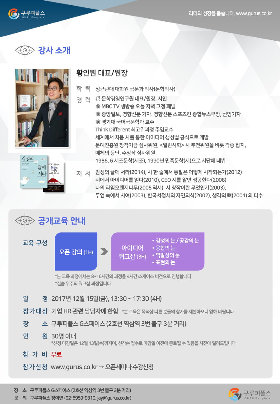 문학경영연구원에서는 국내 최고의 기업 교육 기관인 구루피플스 ()아그막과 함께